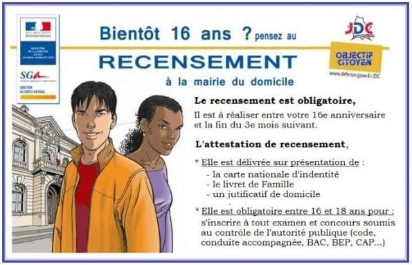Le recensement est obligatoire dès 16 ans pour tout jeune, garçon ou fille, de nationalité française.