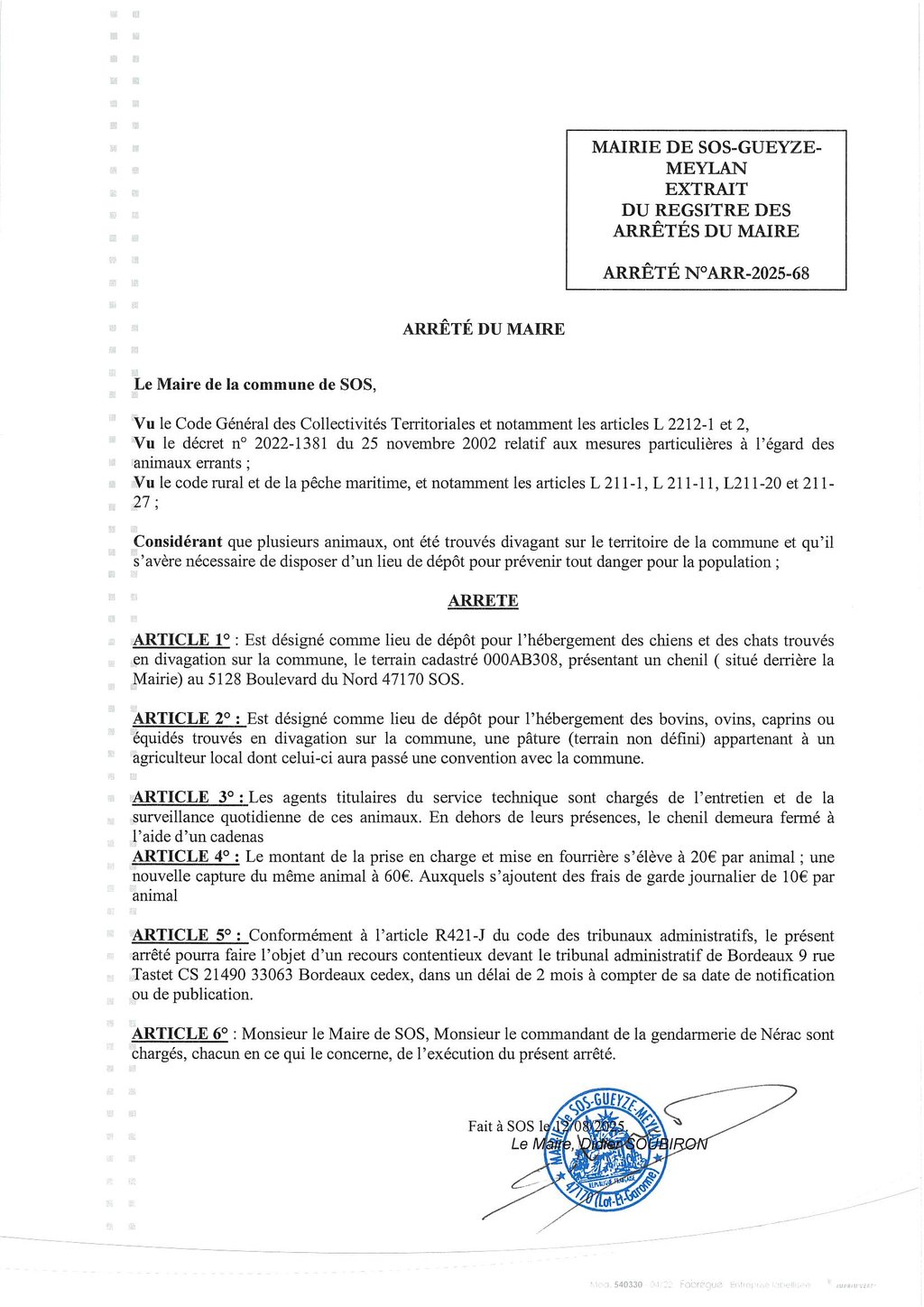 ARRÊTÉ DU MAIRE