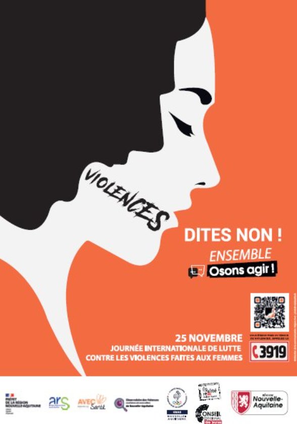 Depuis maintenant 6 ans, la Région mène une campagne de prévention et de sensibilisation grand public aux côtés des partenaires institutionnels et associatifs ; en parallèle elle s’attache à la diffuser en interne au plus près des personnels de la collectivité. Pour cette édition 2025, ont été associés les services de l’État (DRDFE - Délégation régionale aux droits des femmes et à l’égalité Nouvelle-Aquitaine, les trois rectorats de Nouvelle-Aquitaine), le Comité régional olympique et sportif de Nouvelle-Aquitaine (CROS), l’Observatoire régional des violences sexistes et sexuelles de Nouvelle-Aquitaine (ORVSS), l’Agence Régionale de Santé, l’Association Avec Santé et le CRJ, le Conseil Régional des Jeunes.