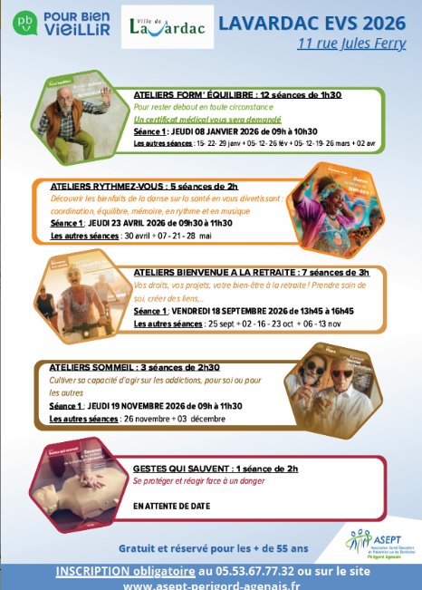 Parce qu’en adoptant des comportements sains et adaptés à son âge on augmente sensiblement sa capacité à rester en pleine forme plus longtemps, l’ASEPT a développé une gamme de conférences, de réunions et d’ateliers thématiques ouverts aux plus de 55 ans, quel que soit son régime de retraite.