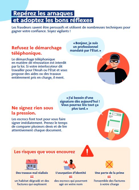Nous vous demandons d’être extrêmement prudents avec les entreprises qui pourraient vous démarcher pour de la rénovation énergétique, de la pose de panneaux photovoltaïques, … toutes sortes de travaux pouvant bénéficier d’aides financières de l’État.