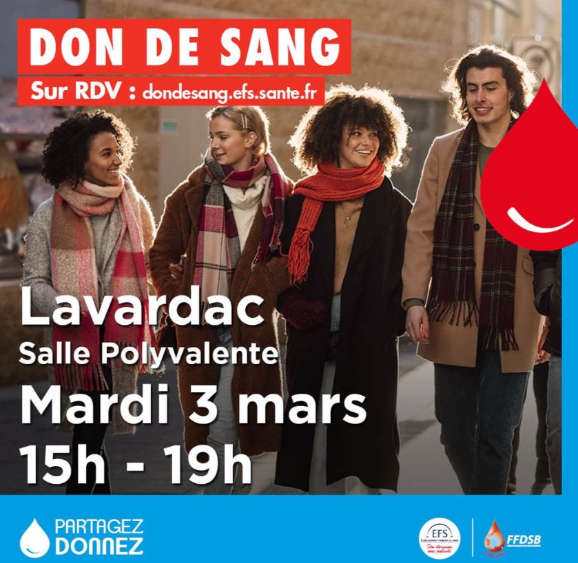 L'Établissement Français du Sang (EFS) organise une collecte de sang le mardi 3 mars. Dans un contexte où les besoins en produits sanguins sont constants, les citoyens de Lavardac et des communes alentours sont invités à se mobiliser massivement…