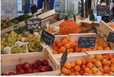 Marché traditionnel de SOS le mercredi matin : primeur, poissonnier, couturière, coiffeuse...