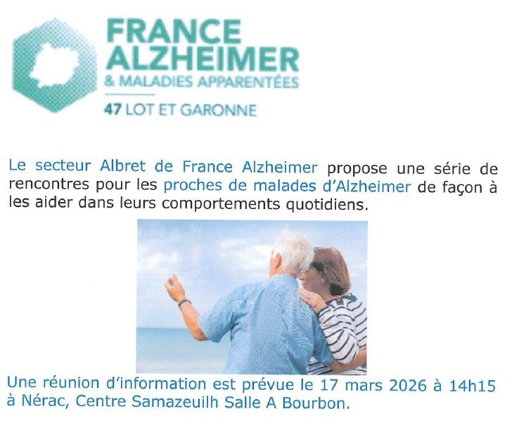 Une réunion d'information est prévue le 17 Mars 2026 à 14h15 à Nérac, Centre Samazeuilh, Salle A Bourbon.